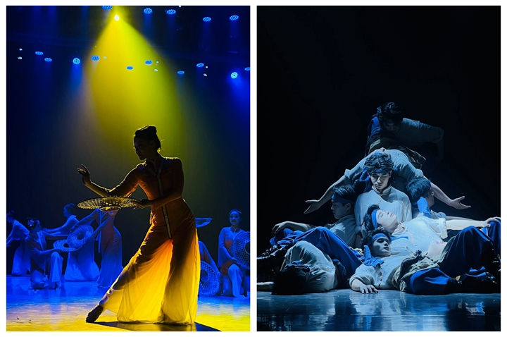 汇报演出以“以舞问道” 为主题,精心设计了 “抚翼”“溯光”“扶摇”和“远行”四个篇章,每个篇章都独具特色,层层递进,将舞蹈艺术的魅力展现得淋漓尽致。