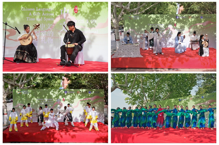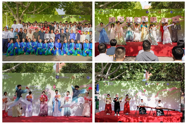 本网讯(通讯员 张艳花/文 国际处/图)为积极响应教育部中外语言交流合作中心庆祝2025年“国际中文日”活动倡议,在省教育厅指导下,4月23日下午,我校成功举办2025年“国际中文日”庆祝活动。本次活动以“中文:穿越时空的礼物”为主题,由国际处主办,公共艺术教育中心、文法学院、体育学院、音乐学院协办,学术副校长金双根参加活动并致辞。我校千余名中外师生齐聚一堂,通过文艺汇演、历史长廊游园会等形式,共同领略中华语言文化的魅力。