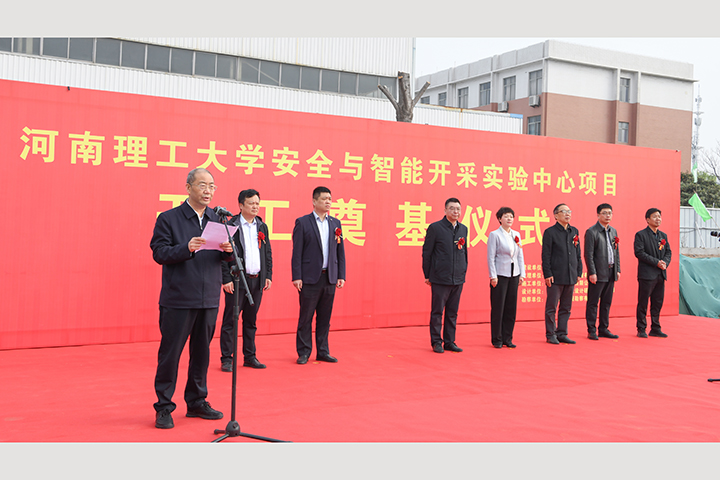 本网讯 (通讯员 王振宇/文 记者 李为群/图)3月27日上午,学校安全与智能开采实验中心项目奠基仪式在南校区体育馆东侧隆重举行。校长赵同谦,副校长翟耀南,焦作市城乡一体化示范区党工委副书记、管委会主任宫卫红,焦作市国防动员办公室二级调研员李振海出席仪式,仪式由翟耀南主持。校办和校建设工程领导小组成员单位负责人、师生代表以及参建单位代表等参加仪式。