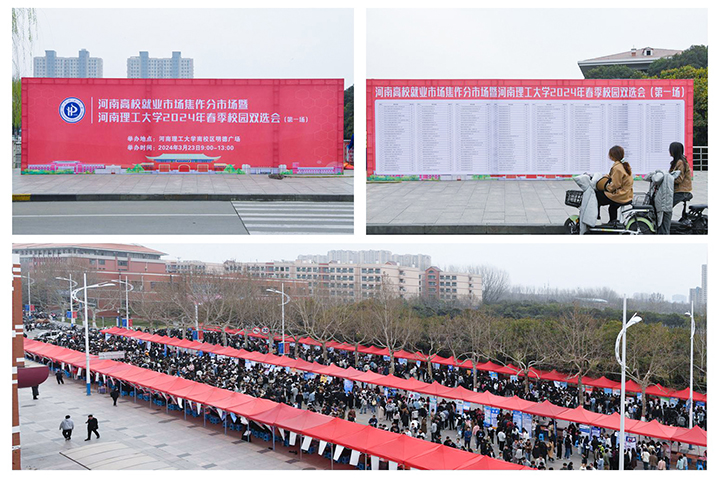 本网讯(通讯员 宋友和/文 李为群 李英键 陈泓任/图)为贯彻落实全国两会精神,按照教育部 2024 届高校毕业生春季促就业攻坚行动和省委、省政府第一季度就业工作“开门红”决策部署,3月23日,我校于南校区明德广场成功举办了河南高校就业市场焦作分市场暨河南理工大2024年春季线下大型校园双选会(第一场)。校党委书记邹友峰、校长赵同谦、校党委副书记解伟等校领导到招聘现场考察指导工作。