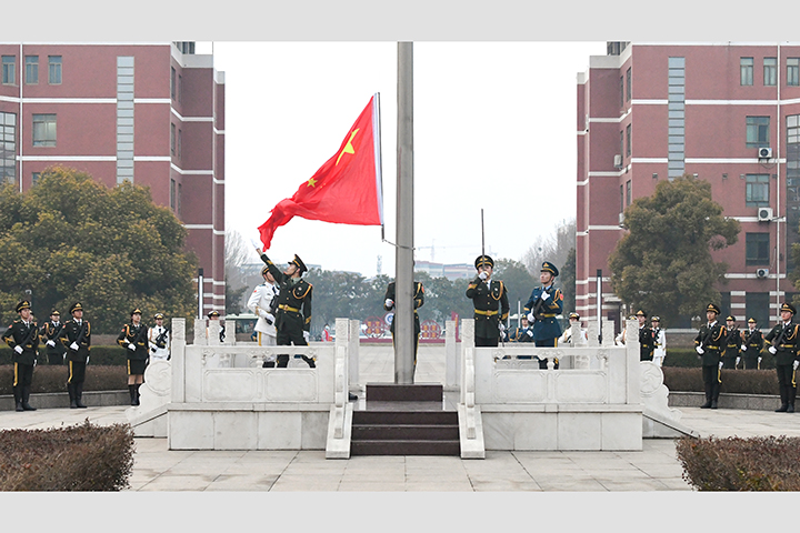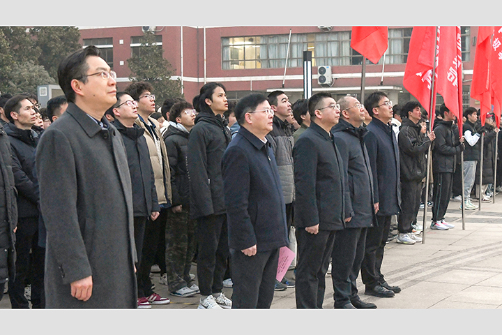 本网讯(通讯员 李静 赵琨/文 记者 李为群/图)2月26日,学校在南校区举行新学期开学升国旗仪式。校领导邹友峰、赵同谦、解伟、翟耀南、程伟、李振华出席升国旗仪式,全体处级干部、各学院(书院)专职辅导员和学生代表3000余人参加升国旗仪式。升国旗仪式由校党委副书记解伟主持。