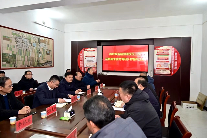 本网讯(通讯员 陈越超)12月26日下午,校长赵同谦带队赴博爱县清化街道办南朱营村调研乡村振兴工作,校办、组织部、校工会、能源学院、创新创业学院、第一附属医院等单位负责同志参加调研,博爱县委副书记、政法委书记樊育新等当地领导陪同调研。
