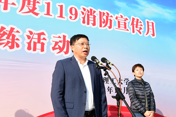杨小林宣布河南理工大学2023年度119消防演练开始。