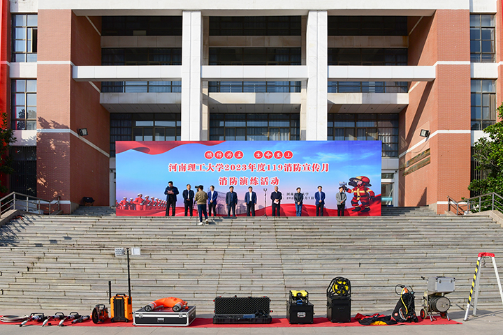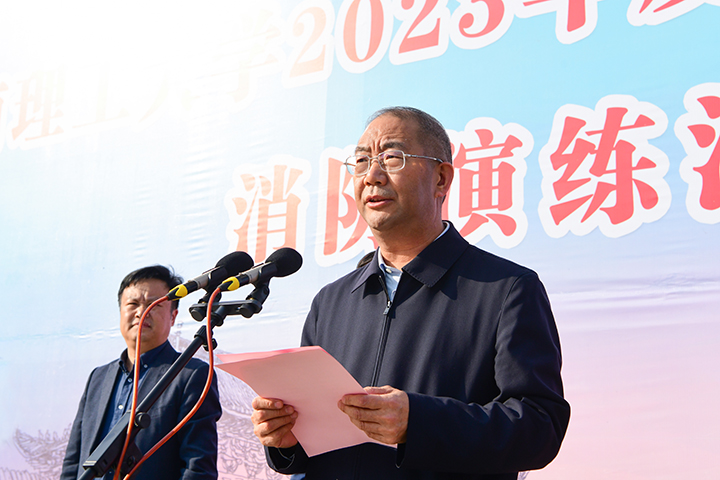 翟耀南讲话。他表示,近年来我校深入学习贯彻习近平总书记关于安全生产和消防工作的重要论述,认真落实上级有关安全工作的会议和文件精神,深入开展安全专项整治三年行动,有力维护了师生生命健康和校园安全。他指出,当前已进入火灾高发季节,要以119消防宣传月活动为契机,广泛组织开展安全宣传教育和应急演练活动,积极营造“人人关注消防、人人参与消防”的良好氛围,着力提升师生员工安全防范意识和自防自救能力。要结合《河南理工大学重大事故隐患专项排查整治2023行动实施方案》,扎实开展消防隐患排查整治,持续推动专项行动落实落细,以高水平安全保障学校事业高质量发展。