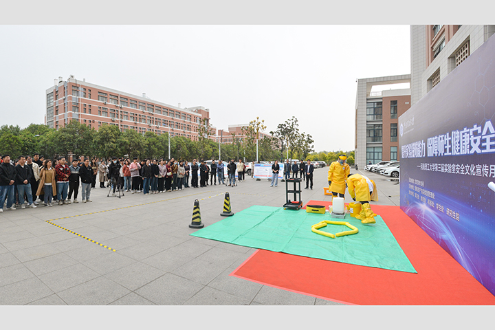 本网讯(通讯员 邓广涛/文 郇齐齐/图)为提高全校师生的实验室安全意识,在真正遇到危险时,能够冷静应对、迅速采取有效的措施,防止事故的发生,11月3日上午,学校在重点实验大楼门前和综合实验楼615实验室分别举办实验室危险废弃物和化学品泄露应急演练活动。副校长翟耀南出席活动,保卫处、教务处、科技处、学生处、研究生院、国有资产与实验室管理处和涉及化学品的学院主管实验室工作的院领导、实验室负责人、研究生及高年级本科生130余人参加活动。