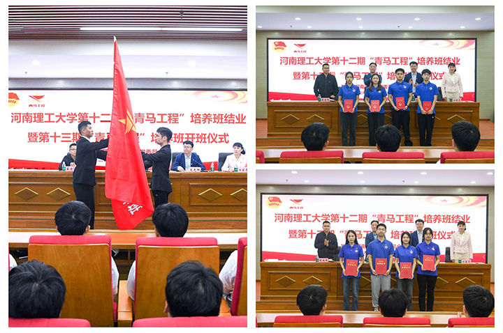 开班仪式在雄壮的国歌声中拉开序幕。主席台就坐领导为第十二期“青马工程”培养班结业学员和优秀学员代表颁发证书,老学员向新学员授班旗,第十二期“青马工程”培养班优秀学员代表和第十三期“青马工程”培养班新学员代表分别进行发言。石培哲代表学校党委向各位顺利结业和即将接受培训的学员表示热烈的祝贺,向一直支持青年马克思主义者培养工作的各部门、各学院、各位老师表示衷心的感谢!同时,他对“青马工程”学员提出三点希望:一是心有所信,行有所依,方能行远。要切实增强对马克思主义、共产主义的信仰,增强对中国特色社会主义的信念,增强对实现中华民族伟大复兴的信心。二是心有所恃,行有所获,方能行稳。要主动学习马克思主义理论和习近平新时代中国特色社会主义思想,肩负使命学、带着问题学、紧跟时代学,将马克思主义的精髓要义内化于心,将马克思主义所蕴含的科学思维外化于行,做到知行合一。三是心有所向,行有所为,未来可期。要厚植家国情怀、涵养进取品格,做到与历史同向,与祖国同行,与人民同在,能够坚持艰苦奋斗、顽强奋斗、接续奋斗、团结奋斗,以理想者、担当者、吃苦者、奋斗者的姿态,奋进新时代,争做好少年。