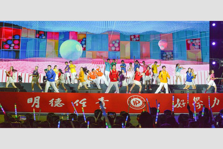 本网讯 (通讯员 刘鹏杰 马雨彤 赵亚楠/文 记者 李为群/图)清朗秋风迎丹桂,青春荣光踏歌行;百年学府植沃壤,莘莘学子扬帆起航。9月21日晚,河南理工大学“新征程新篇章新成长”2023级迎新生联欢会在南校区东区体育场隆重举行。校领导杨小林、石培哲、赵晓军出席联欢会,学校相关职能部门、各学院负责人,新生军训教官和万余名师生共览盛会。