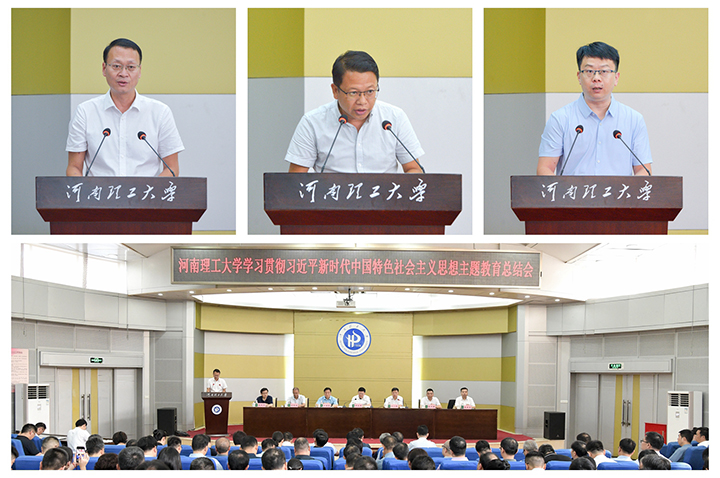 本网讯 (记者 苏丽敏/文 李为群/图)按照省委主题教育领导小组统一部署和学校主题教育工作安排,9月15日,学校在力行楼学术报告厅召开学习贯彻习近平新时代中国特色社会主义思想主题教育总结大会。校领导邹友峰、杨小林、石培哲、赵同谦、翟耀南、朱建光、赵晓军参加会议,校长杨小林主持会议。