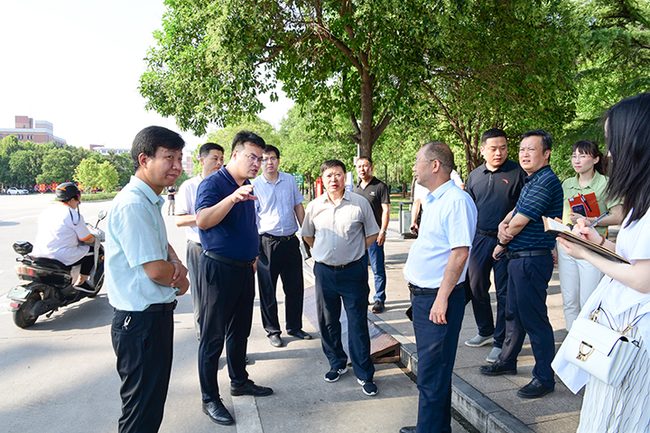 本网讯(记者 苏丽敏/文 李为群/图)清风拂面秋意浓,正是归来好时节。为迎接全校师生顺利开学返校,确保新学期各项工作平稳、安全、有序,8月24日下午,校长杨小林带队深入南北校区检查指导开学准备工作。副校长翟耀南一同检查。