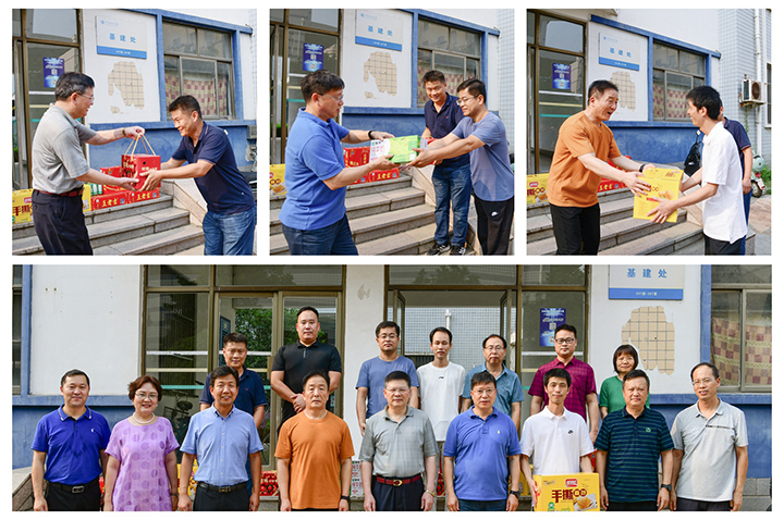 本网讯 (记者 鲁小茜/文 李为群/图)8月17日下午,校党委书记邹友峰、校长杨小林、校党委副书记石培哲一行到南校区南门门岗、校医院、9854服务大厅和基建处等处,慰问暑期坚守岗位的教职员工,为大家送去清凉和关怀。