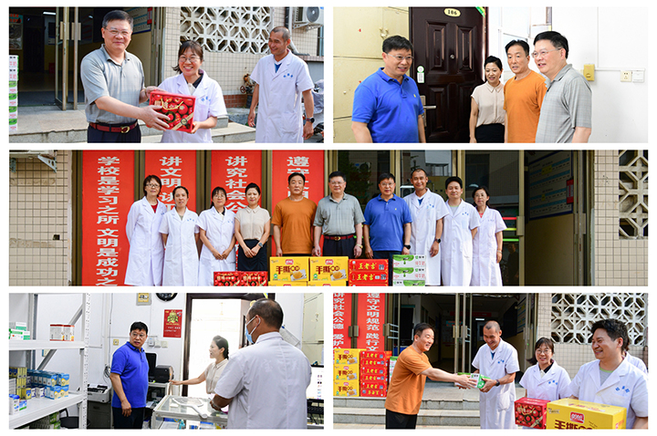 “辛苦了!”邹友峰一行在南门门岗与坚守岗位的同志们一一握手,并认真听取暑期学校的安全保卫工作。在校医院,校领导先后到内科二诊室、药房等,了解医生轮值安排及假期师生就诊情况,对他们坚守岗位、做好师生医疗保障的辛勤工作表示敬意,并提前祝大家医师节快乐。在后勤9854服务大厅和基建处办公室,校领导亲切叮嘱大家“要严格生产安全,注意防暑降温,做到劳逸结合!”教职工们对学校的关心和慰问表示感谢,继续投入到各自紧张忙碌的工作中。