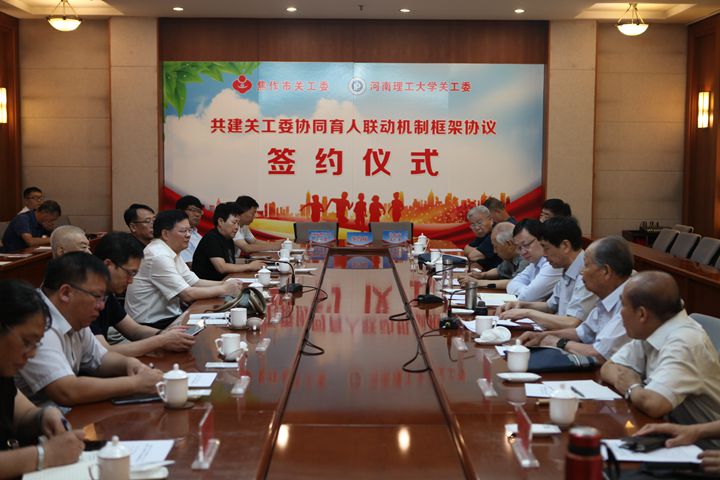 8月4日,我校关工委与焦作市关工委协同育人联动机制框架协议签约仪式在焦作市行政会议中心第十会议室举行。校党委书记邹友峰,焦作市委副书记、政法委书记刘冰,副校长沈记全,校关工委常务副主任卫中玲、校关工委顾问苗建勃出席仪式,市关工委主任秦海彬主持仪式。