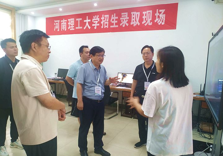 招生就业处主要负责同志向赵晓军详细汇报了学校在省内外录取进展、各批次招生规模以及部分报考热门专业等情况,并着重介绍了当前正在进行的河南本科二批录取情况,今年河南本科二批录取分数再创新高:平煤校区录取最低分498分(高出二本线89分)、鹤壁校区录取最低分492分(高出二本线83分)、郑州校区录取最低分487分(高出二本线78分)。赵晓军充分肯定了招生工作取得的成绩,对参加招生录取工作的全体人员表示了诚挚问候和衷心感谢。赵晓军强调,招生工作事关考生及家庭切身利益,是考生进入高校感受教育公平的第一关,全体工作人员要提高政治站位,充分认识做好招生录取工作的重要性和严肃性,严格按照招生政策,细致审核,层层把关,确保录取过程公平公正公开。