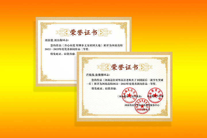 其中,学校被授予“河南高校2022—2023年度宣传先进单位”卓越奖,党委宣传部教师芦晓伟被评为年度“优秀通讯员”,学校推荐的校报新闻作品《河南这位对外汉语老师火了 回国最后一课学生哭成一片》(作者 芦晓伟 徐珊珊)获评优秀新闻作品一等奖,校报新闻作品《丹心向党 用脚步丈量祖国大地》(作者 刘春德 刘小梅)获评优秀新闻作品二等奖。