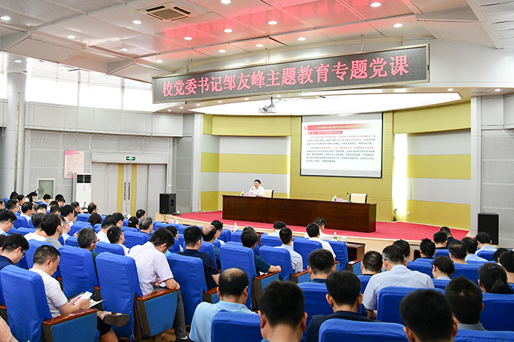 邹友峰围绕“提升思想意识,牢牢把握中国式现代化理论体系”“把握核心要义,深刻领会习近平总书记在中央政治局第五次集体学习时重要讲话精神”“持续深化实践,推进‘双一流’创建再建新功”等三个方面,结合个人学习体会和工作实际,讲授了一堂理论站位高、实践指向强、举措措施实的专题党课。