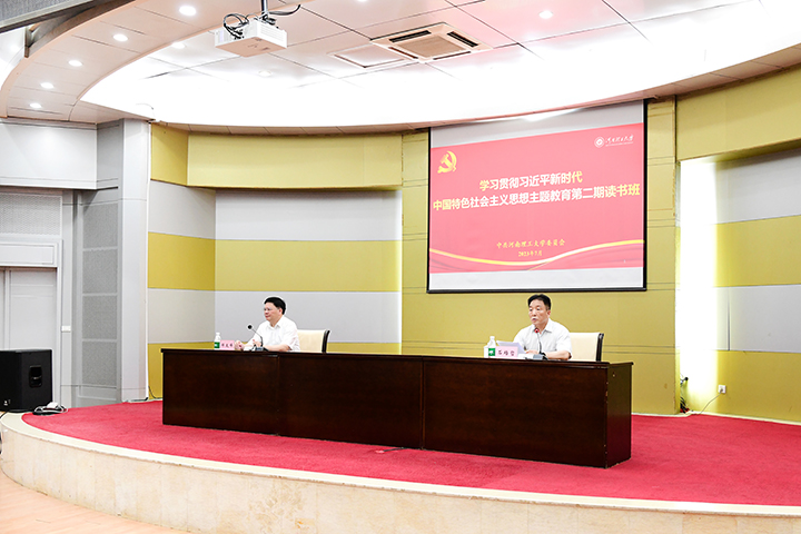 本网讯(记者 苏丽敏/文 李为群/图)7月12日,学校主题教育第二期读书班开班。校党委书记邹友峰作题为《牢牢把握中国式现代化理论体系 扎实推进“双一流”创建的新实践》的专题党课。校长杨小林、副校长翟耀南出席,校党委副书记石培哲主持。全体处级干部参加学习。