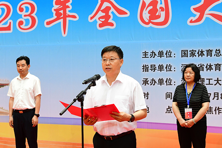王延梅宣布2023年全国大学生掷球锦标赛开幕。