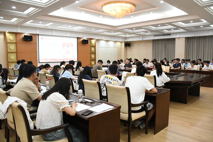 本网讯 (通讯员 陈芳杰 梁梦华/文 张昊/图)为深入学习贯彻习近平新时代中国特色社会主义思想,引导青年坚定理想信念,进一步增强向心力、凝聚力和创造力,6月8日下午,副校长赵同谦在力行楼一楼会议室以《汲取伟大思想的智慧和力量 在实现伟大梦想实践中踔厉奋发》为题为我校研究生党员代表上了一堂主题教育专题党课。