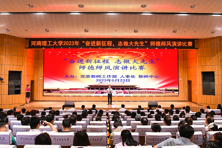 本网讯 (通讯员 时建朝/文 记者 李为群/图)5月23日下午,学校“奋进新征程 志做大先生”师德主题教育演讲比赛在第二图书馆学术报告厅成功举行。校党委副书记石培哲致辞并为获奖教师颁奖,校纪委、宣传部、教师工作部、教务处、研究生院负责人、教师代表等300余人到场观看。