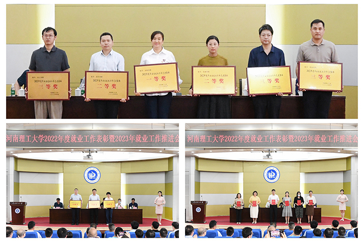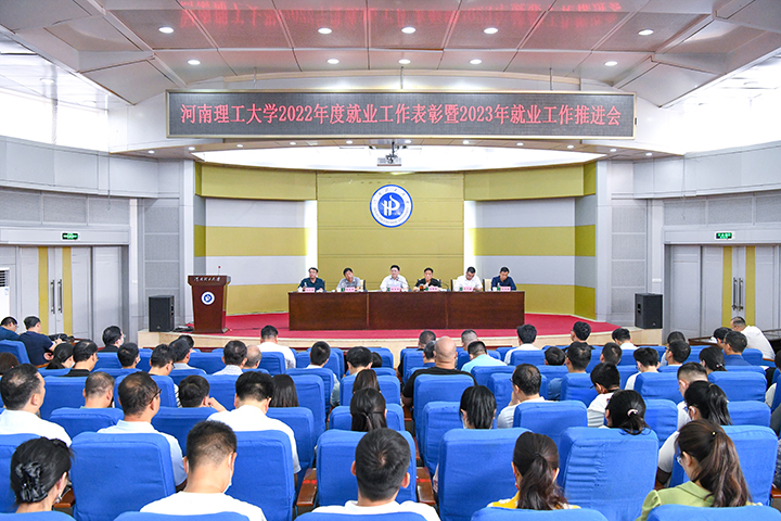 本网讯 (通讯员 田路、杜玉梅/文 记者 李为群 通讯员 郇齐齐/图)为深入贯彻党的二十大精神,落实全国全省有关大学生就业工作的决策部署,推动2023届毕业生实现高质量充分就业,5月19日下午,我校在力行楼学术报告厅召开2022年度就业工作表彰暨2023年就业工作推进会。校党委书记邹友峰、校纪委书记陈自录、副校长赵同谦、副校长沈记全、校工会主席郭相春参加会议,校党委副书记石培哲主持会议。