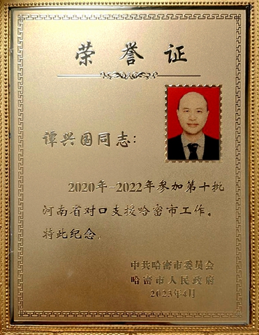 谭兴国是电气学院交通信息工程与控制系教师,为中组部选派的河南省第十批援疆干部人才,在哈密工作三年,对口支援哈密职业技术学院,同时负责哈密豫新能源产业研究院的科研管理工作。在援疆工作期间,他积极开展教育援疆、科技援疆等工作,在特色骨干专业建设、师资提升、团队建设、产教融合、高端人才培养等方面取得了突出的成绩,先后获评“优秀共产党员”、哈密职业技术学院“优秀援疆教师”等称号。这不仅树立了河南理工大学援疆人的良好形象,而且与当地师生结下了豫哈之间的深情厚谊。