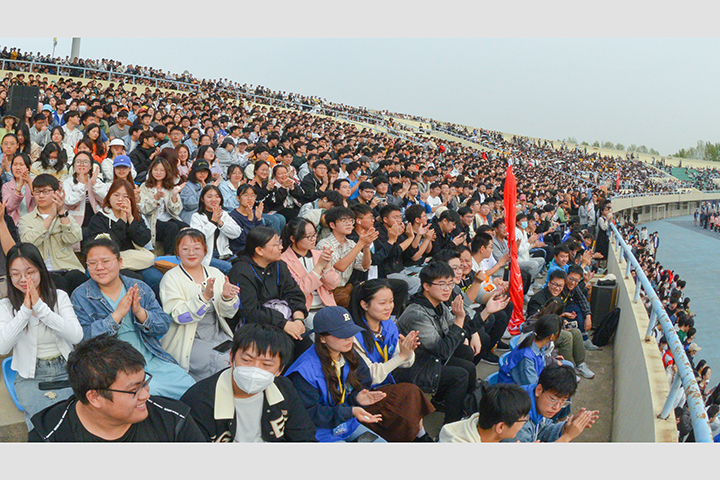 在全体裁判员、运动员和现场观众热切期盼的瞩目下,校党委书记邹友峰宣布:“河南理工大学2023年体育节暨运动会开幕!”