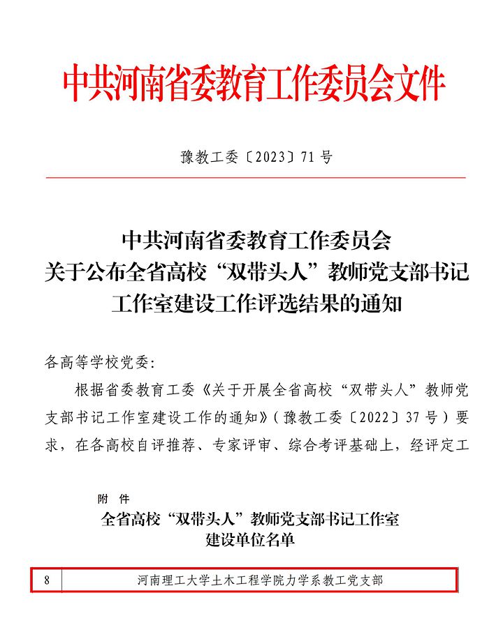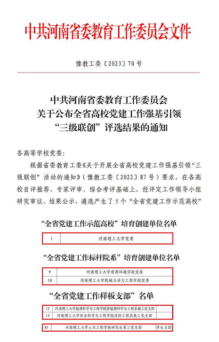 据悉,省委教育工委于2022年集中开展了全省高校党建工作强基引领“三级联创”“双带头人”教师党支部书记工作室、“大学生党员标兵”、基层党建创新典型案例等4类活动评选,经过精心组织、认真遴选、高质量撰写申报材料,学校在4类、6种荣誉皆获表彰,数量居全省高校前列,喜获“大丰收”。其中,获评“全省党建工作标杆院系”2个、“全省党建工作样板支部”3个、“双带头人”教师党支部书记工作室1个、“大学生党员标兵”2个、基层党建创新典型案例3个,充分凸显了全校各级党组织全面进步、全面过硬的工作成效。