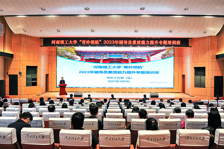 本网讯 (通讯员 赵琨 王文萍/文 记者 李为群/图)为深入学习贯彻习近平新时代中国特色社会主义思想和党的二十大精神,不断提升我校辅导员的理论水平、职业能力和专业素养,3月9日上午,学校在南校区第二图书馆学术报告厅举办“青衿领航”2023年第一期辅导员素质能力提升专题培训班,校工会主席郭相春出席。学生工作部、研究生工作部负责人、各学院党委副书记以及全体专职辅导员等100余人参加培训。学生工作部部长陈昊主持培训会。