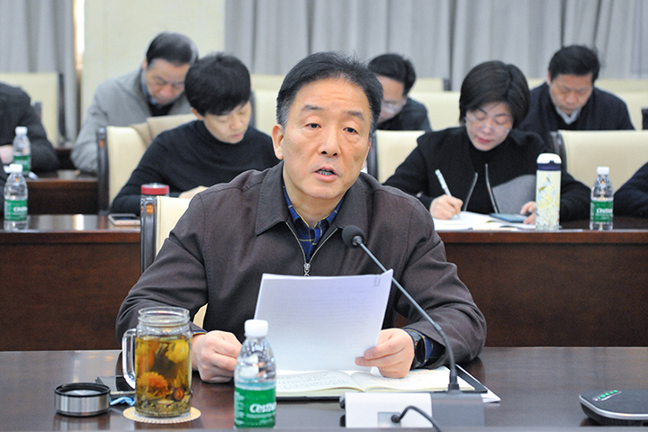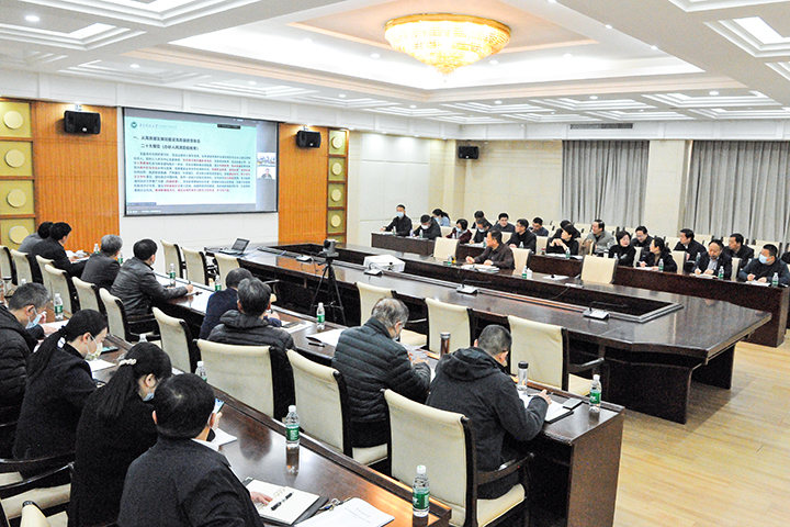 本网讯 (记者 裴建伟 通讯员 田清扬/文 郑智源/图)3月3日,校党委理论学习中心组(扩大)学习会暨校处级领导干部学习贯彻党的二十大精神专题培训在力行楼一楼会议室开展,邀请华中科技大学教授、博士生导师陈廷柱作题为《如何理解和推进高质量教育体系建设》的专题报告。学习会由校党委副书记石培哲主持。校党委理论学习中心组成员,各党委(党总支)书记在线下会场参加学习,其他处级干部线上学习。