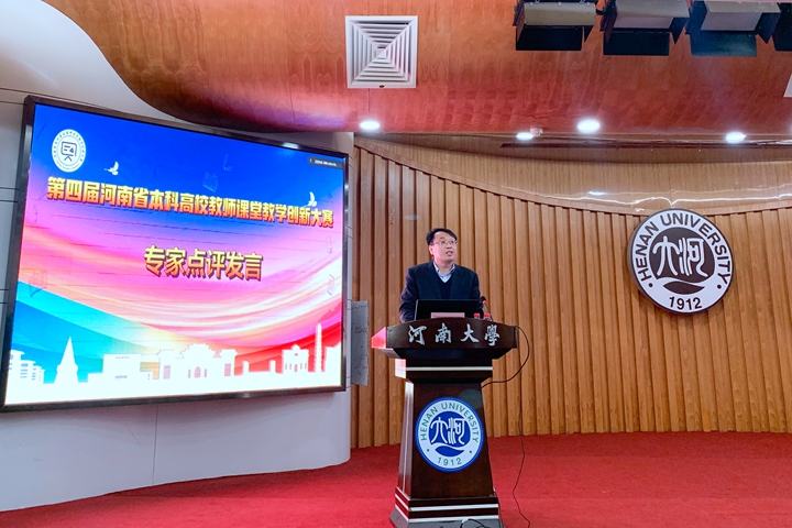 本网讯 (通讯员 陈莉 张琮)2月26日至27日,由河南省教育厅主办的河南省第四届本科高校教师课堂教学创新大赛决赛在河南大学金明校区落下帷幕。外语学院教师冉玉体荣获特等奖,心理健康教研室邱莎莎荣获一等奖,我校荣获最佳组织奖。我校副校长沈记全、测绘学院教授程钢应邀担任决赛评委。颁奖典礼上,沈记全代表大赛评委作点评发言。