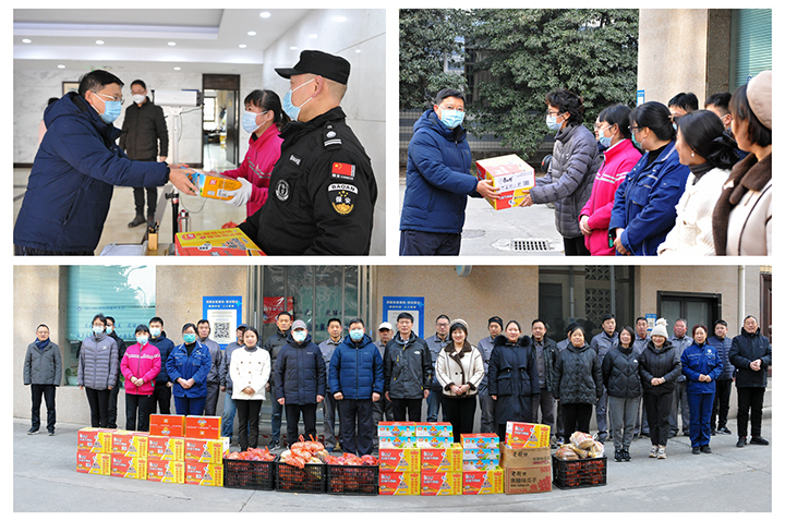 本网讯(记者 刘春德/文 记者 李为群 通讯员 谢玉芬/图)1月21日是农历除夕,学校南北校区和各家属院张灯结彩,大红灯笼高高挂起,处处洋溢着浓浓的节日氛围,一派欢乐祥和景象。校长杨小林、副校长赵同谦带着学校的深切关怀,分别深入南北校区,走访慰问寒假期间依然坚守岗位、奋战一线的工作人员,向他们致以美好的新春祝福,并送上节日慰问。