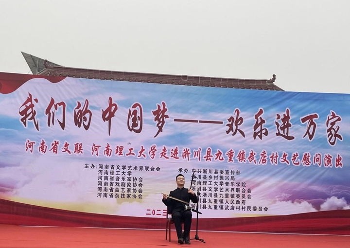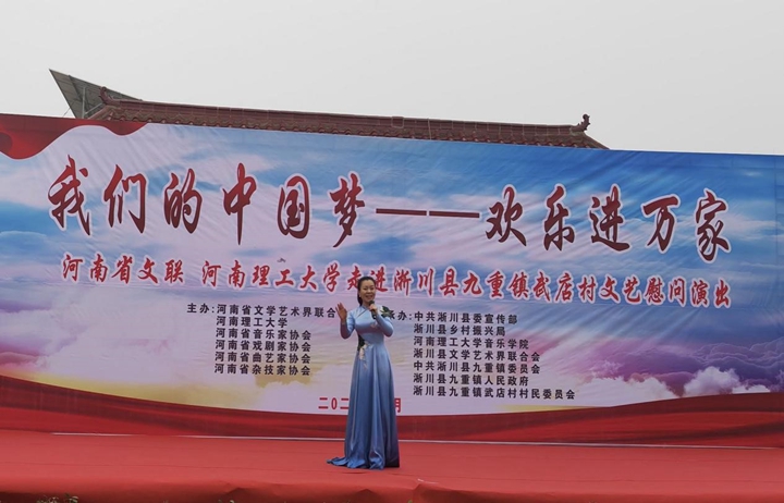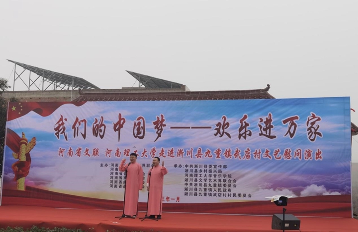 为深入学习贯彻党的二十大精神,进一步推动校地结对帮扶工作,加强校地文化交流,助力淅川县文化振兴。1月13日上午,由河南省文联、河南理工大学主办,淅川县委宣传部、校音乐学院、县乡村振兴局、县文联、九重镇承办的“我们的中国梦 文化进万家”文艺慰问演出活动在九重镇武店村举行。