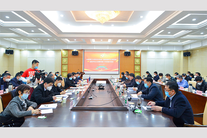 本网讯(记者 鲁小茜/文 李为群/图)1月8日下午,学校在力行楼一楼会议室召开2022年度全校二级党组织书记抓党建述职评议大会暨党建工作经验交流会。校领导邹友峰、杨小林、石培哲、解伟、赵同谦、沈记全、郭相春出席,会议由校党委副书记石培哲主持。