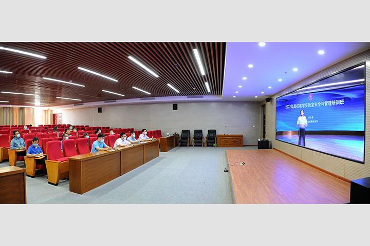 本网讯 (通讯员 邓广涛/文 记者 李为群/图)为贯彻全国高等学校实验室安全工作会议精神,6月10至11日,我校组织参加教育部高等教育司主办、全国高校教师网络培训中心承办的线上“高校教学实验室安全与管理培训班”。副校长赵同谦出席会议,教务处、科技处、研究生院、后勤处、保卫处等实验室安全工作领导小组成员单位负责人、实验室安全督导组专家和实验设备处主要科室全体人员在重点实验大楼三楼报告厅参加会议。按照疫情防控要求,各学院自设会场进行视频直播,学院领导、实验室主任、实验室安全管理人员、实验室技术人员和相关教师参加培训。