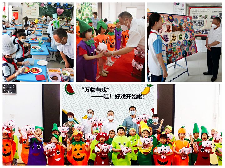 在小学,郑广华参观了小学生自制绘本展和我校学生参加“焦作市中小学生艺术体育节”获奖作品展,对孩子们的想象力和表现手法给予了高度评价。在孩子们进行的现场特长展示区域,郑广华认真观看了孩子们的书法、篆刻、国画等现场创作,对小学生的书法、绘画水平表示肯定和赞扬,并希望小学能够一如既往地做好学生素质培养。随后,郑广华逐个走进小学教室,与孩子们一起游戏,为孩子们送去节日祝福。