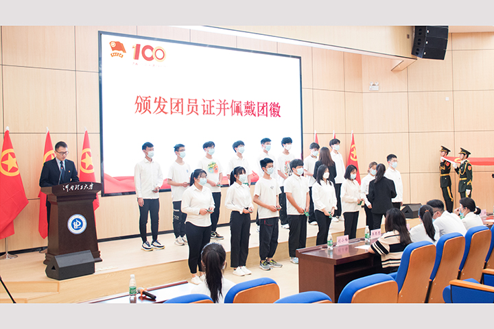 仪式在庄严的国歌中拉开序幕。老团员代表为新团员颁发团员证、佩戴团徽,新团员进行了入团宣誓,新团员代表、老团员代表分别进行了交流发言。校团委书记支光辉代表学校团委向全校广大青年致以节日的问候。他向全体团员青年提出三点希望和要求:一是厚植家国情怀,树立远大理想。希望广大团员青年要厚植家国情怀,把个人理想自觉融入国家发展伟业,把爱国情、强国志、报国行融入实现中华民族伟大复兴的奋斗之中,扎根人民,奉献国家。二是站稳人民立场,担当时代责任。希望广大团员青年要继续发扬奉献祖国、服务人民的优秀品质,用脚步丈量祖国大地,用眼睛发现中国精神,用耳朵倾听人民呼声,用内心感应时代脉搏,把对祖国血浓于水、与人民同呼吸共命运的情感贯穿学业全过程、融汇在事业追求中,努力成长为堪当民族复兴重任的时代新人。三是矢志永久奋斗,实现人生价值。广大团员青年正处在最有求知欲、最有创造力的黄金时期,希望广大团员青年永葆创新激情,投身创新创造实践,增加知识储备,提升专业能力,坚持知行合一,真抓实干,在不断奋斗中实现人生价值。