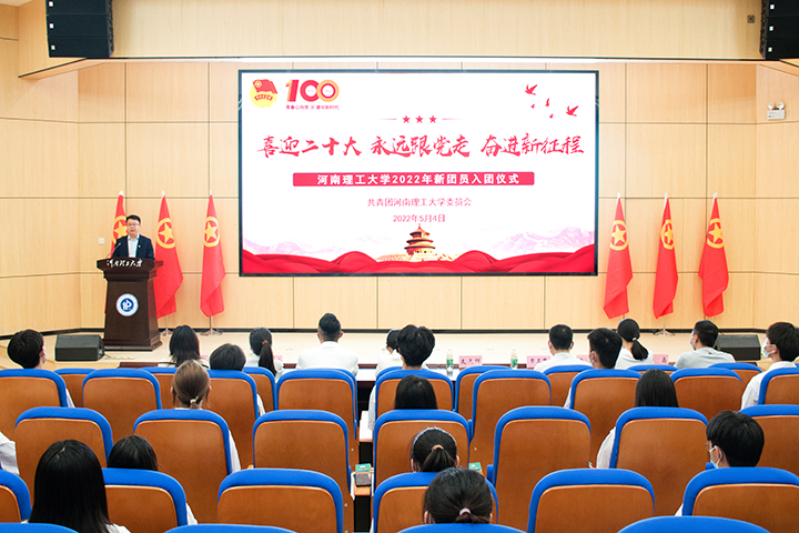 本网讯 (通讯员 张强/文 王红涛/图)为庆祝中国共产主义青年团成立100周年,引领广大团员青年为实现第二个百年奋斗目标、实现中华民族伟大复兴的中国梦凝聚起强大青春力量,以优异的成绩迎接党的二十大召开,向建团百年献礼。5月4日中午,学校在工商学院尚为学术报告厅举行了2022年“喜迎二十大,永远跟党走,奋进新征程”集中入团仪式。校团委、相关学院团委负责人,新老团员代表参加仪式。