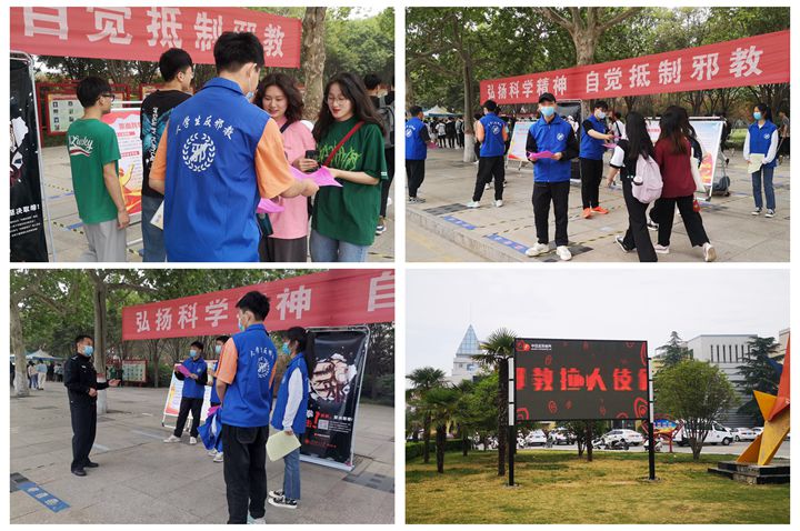 为进一步贯彻落实“反邪教警示教育进校园”活动,保卫部牵头,宣传部、学工部等部门配合,联合焦作市城乡一体化示范区公安分局政保大队于4月25日在春秋大道南侧开展了宣传教育活动。