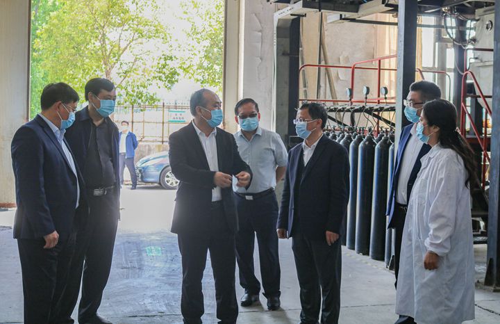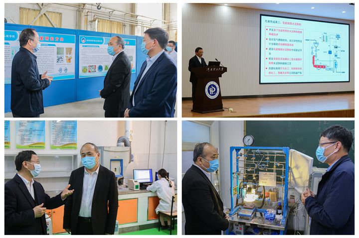 市科技局局长杜安禄、市工信局局长付希强、示范区管委会副主任高鸿,我校校办、科技处负责人、材料学院相关负责人参加调研。