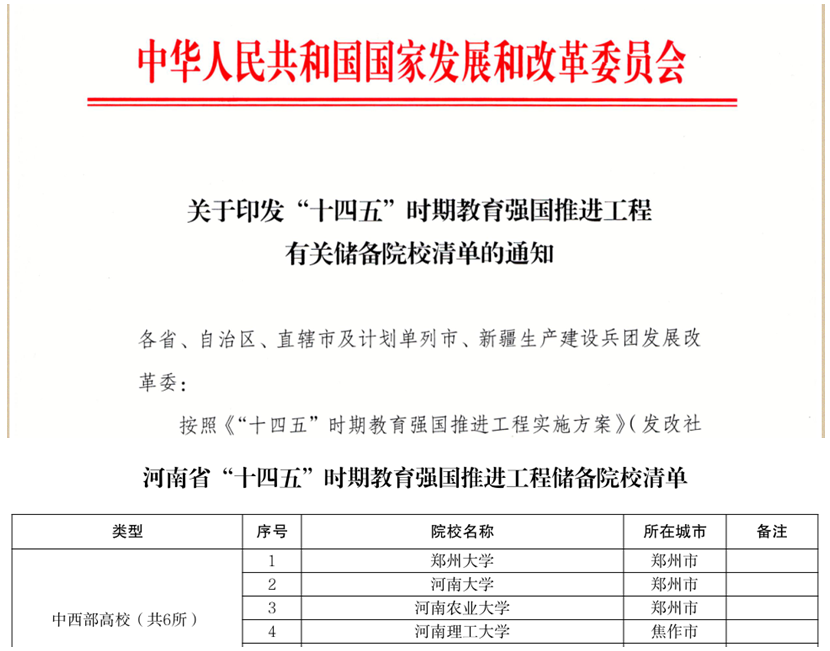 前期,国家发展和改革委员会、教育部和人力资源和社会保障部联合下发《“十四五”时期教育强国推进工程实施方案》(发改社会〔2021〕671号),根据文件精神,学校高度重视此项申报工作,多次组织论证会,及时准备相关材料,经省教育厅、省发改委审核,省政府上报国家发改委、教育部和人力资源和社会保障部,最终成功入选“十四五”教育强国推进工程高等教育内涵发展中西部高校建设”支持高校,既有助于进一步改善学校办学条件,同时,也充分彰显了学校办学水平和综合实力。