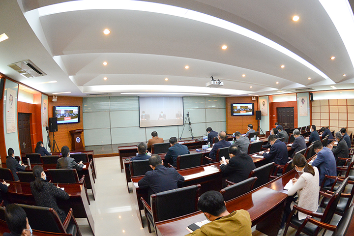学校在明德楼一楼会议室设置分会场,校领导邹友峰、石培哲、赵俊伟、翟耀南、沈记全、朱建光、郭相春、郑广华参加视频会议。