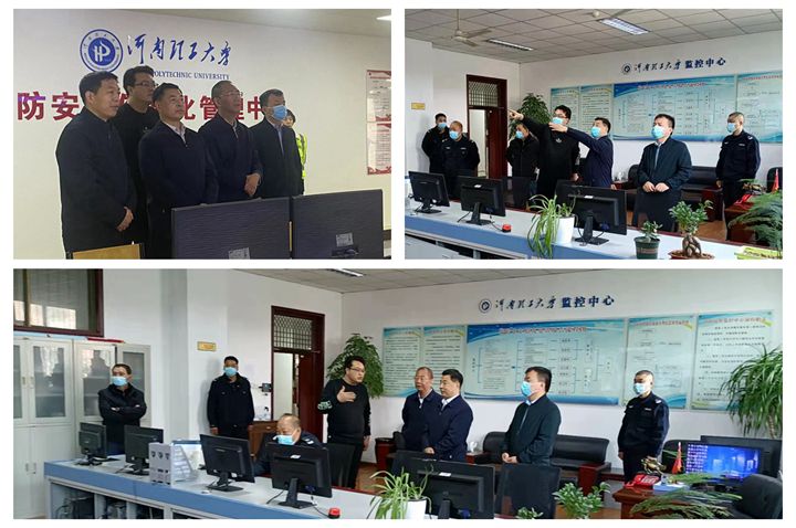 杨伯堂一行先后到学校门岗、监控中心、消防控制室、学生宿舍楼和危化品仓库进行了走访调研。在调研中,杨伯堂对校门口硬隔离设施的设置、门岗管理、监控中心和消防控制室的软硬件建设、危化品仓库的日常管理给予肯定,并就学生宿舍楼安置限位器和一楼学生宿舍防盗网安装提出了要求。