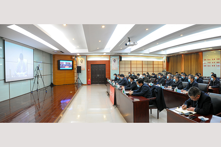 学校在明德楼一楼会议室设置分会场,校领导邹友峰、杨小林、石培哲、解伟、陈自录、赵俊伟、翟耀南、沈记全、朱建光、郭相春、郑广华参加视频会议。