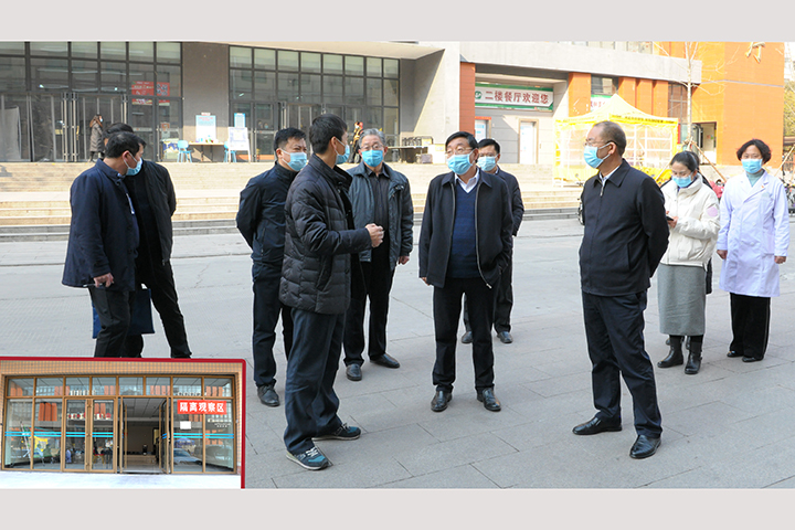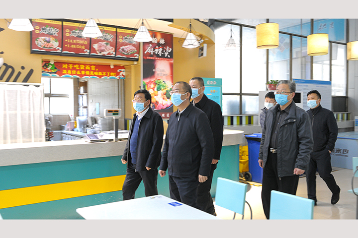 本网讯(记者 芦晓伟/文 李为群/图)2022年新学期学生返校在即,为贯彻落实省教育厅和学校关于学生返校期间疫情防控相关要求,2月23日下午,校疫情防控督导组组长、校纪委书记陈自录,副校长翟耀南带队对南校区校园疫情防控工作落实情况进行检查督导。