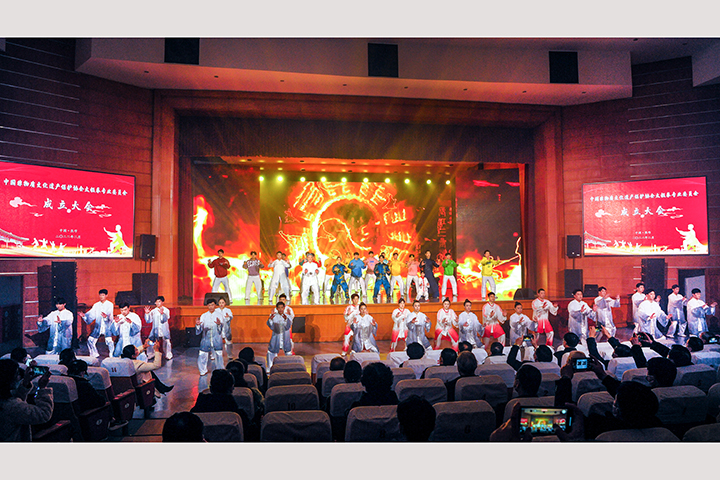 本网讯(记者 胡华伟/文 李为群/图)2月18日上午,中国非物质文化遗产保护协会太极拳专业委员会(以下简称“太极拳专委会”)成立大会在学校明德楼音乐厅隆重举行。中国非物质文化遗产保护协会会长王晓峰,文旅部非遗司副司长李晓松,河南省文化和旅游厅党组书记、厅长姜继鼎,河南省体育局副局长马宇峰,焦作市领导李亦博、宫松奇、吴军,学校领导邹友峰、杨小林、郭相春出席。太极拳专委会80名会员参加大会。大会由中国非物质文化遗产协会副会长兼秘书长张雅芳主持。