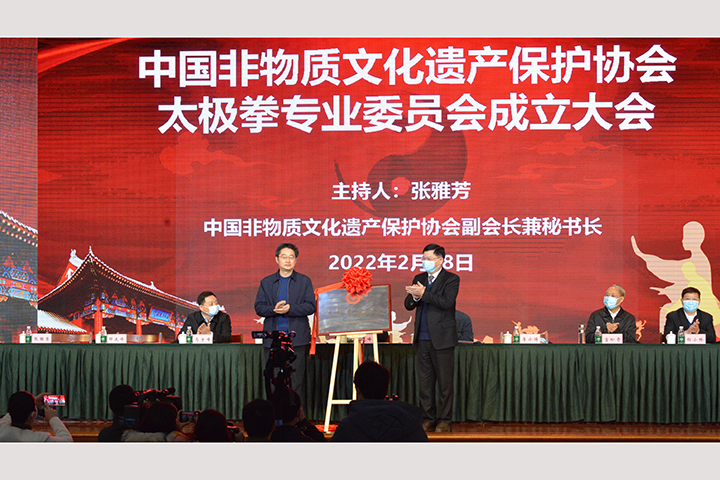 王晓峰在讲话中指出,设立中国非物质文化遗产保护协会太极拳专业委员会,是落实《关于进一步加强非物质文化遗产保护工作的意见》要求,推动太极拳传承发展的积极举措。王晓峰对太极拳专委会提出三点要求。一是要切实抓好自身建设。按照相关章程制度,加强自我建设、自我管理、自我发展。团结太极拳各大社区,共同努力,积极推动太极拳事业发展,使专委会成为深受会员尊重、富有社会公信力的协会分支机构。二是要持续推进传承发展。坚持公益性、服务性、专业性,培育共同保护非物质文化遗产的社会氛围。创新形式和载体,进一步吸引年轻一代自觉了解太极拳,主动参与太极拳的保护和传承,激发他们保护太极拳的责任感,培养更多年轻有为的优秀传承人。三是要主动融入社会服务大局。广泛传播以太极拳为载体的中华太极文化,助力推动文化强国建设,践行“共享太极,共享健康”理念,充分发挥太极拳修身养性、强身健体功能,增强人民群众对太极拳非物质文化遗产的参与感、获得感、认同感,为推进健康中国建设、提高人民健康水平作出积极贡献。