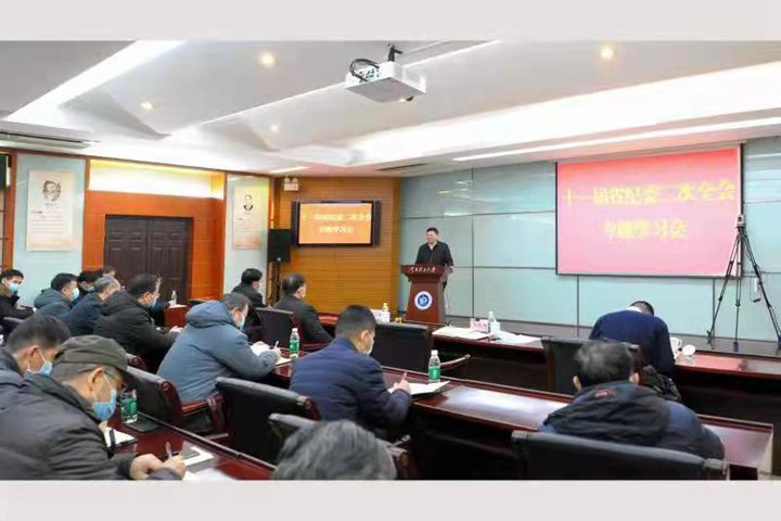本网讯(通讯员 靳伟娜)1月27日下午,学校在明德楼一楼会议室召开十一届省纪委二次全会精神专题学习会。校党委书记邹友峰传达了全会精神,领学了省委书记楼阳生同志的讲话精神。全体在家校领导、校党委委员和各单位中层正职共同参加了学习。