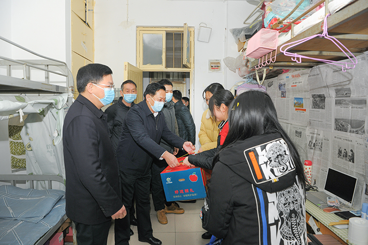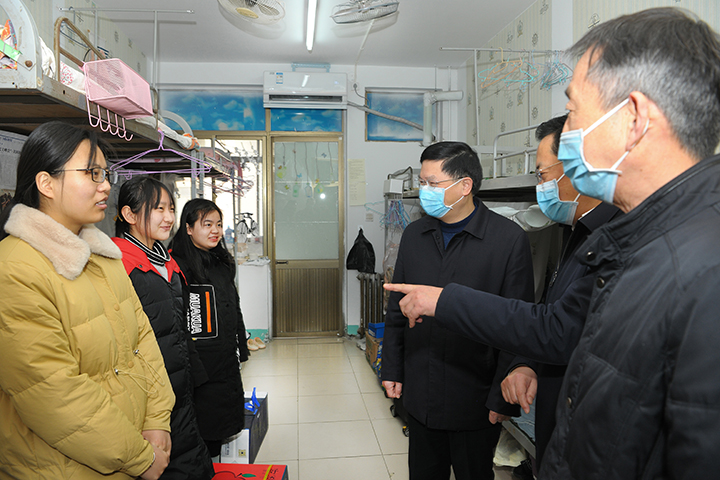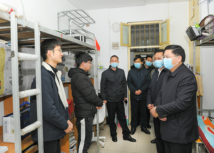 邹友峰一行来到留校学生住宿的竹园4号学生宿舍,认真查看和了解留校学生的住宿、饮食和疫情防控保障情况。他指出:对于寒假因疫情没有能够及时离校返家的同学,你们的父母牵挂着,学校和老师们也都牵挂着,看到同学们学习和生活得到有效保障,听到同学们对学校的安排非常满意,学校也就放心了。在看望留校学生中,每到一间宿舍,与他们亲切交谈,详细询问同学们吃住情况、学习情况和目前家乡的疫情防控形势,并亲切地叮嘱大家给家人报个平安。他希望同学们精心安排好留校期间寒假生活,多学习知识,多锻炼身体,为在新的一年取得新进步积蓄力量;要求同学们严格遵守疫情防控和学校管理规定,切实做好个人防护,用自己的实际行动维护寒假期间校园和谐稳定;强调同学们遇到实际困难,要及时向学校反馈,学校相关部门也一定会做好大家在校期间的住宿、饮食及日常生活服务等工作。