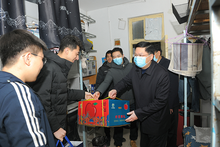 本网讯(通讯员 崔志恒/文 记者 李为群/图)1月12日上午,校党委书记邹友峰、校党委副书记解伟一行走访慰问因疫情暂缓离校返家的留校学生。党办、学工部(处)、研工部、后勤处(后勤集团)相关负责人陪同走访慰问。