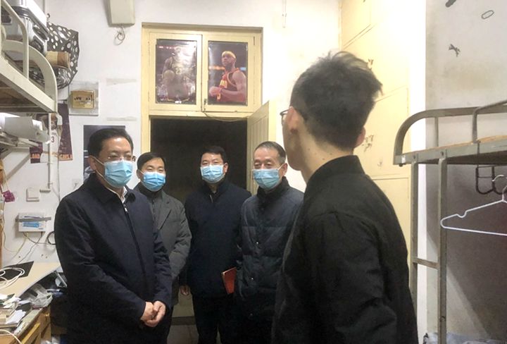解伟一行先后来到学生宿舍和学生餐厅,看望暂缓离校的学生,并同他们亲切交谈,详细询问了他们的学习、生活和家庭情况,鼓励他们安心留校,并保持乐观向上的学习生活态度。对于备考教师资格证的学生,鼓励他们认真准备,争取取得理想的成绩。叮嘱他们要严格遵守疫情防控和学校管理规定,切实做好个人防护,用自己的实际行动维护寒假期间校园和谐稳定。同时,提醒同学们遇到实际困难,及时向学院、学校反馈,学校相关部门也一定会做好同学们在校期间的住宿、饮食及日常生活服务等工作。